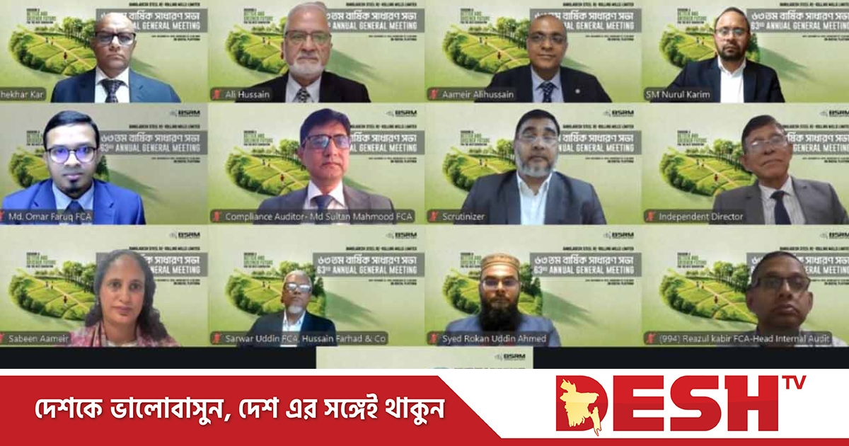 বাংলাদেশ স্টিল রি-রোলিং মিলস লিমিটেডের (বিএসআরএম) ৬৩তম বার্ষিক সাধারণ সভা (এজিএম) বাংলাদেশ সিকিউরিটিজ অ্যান্ড এক্সচেঞ্জ কমিশন (বিএসইসি)-এর গাইডলাইন অনুসরণ করে ডিজিটাল প্ল্যাটফর্মে অনুষ্ঠিত হয়েছে।