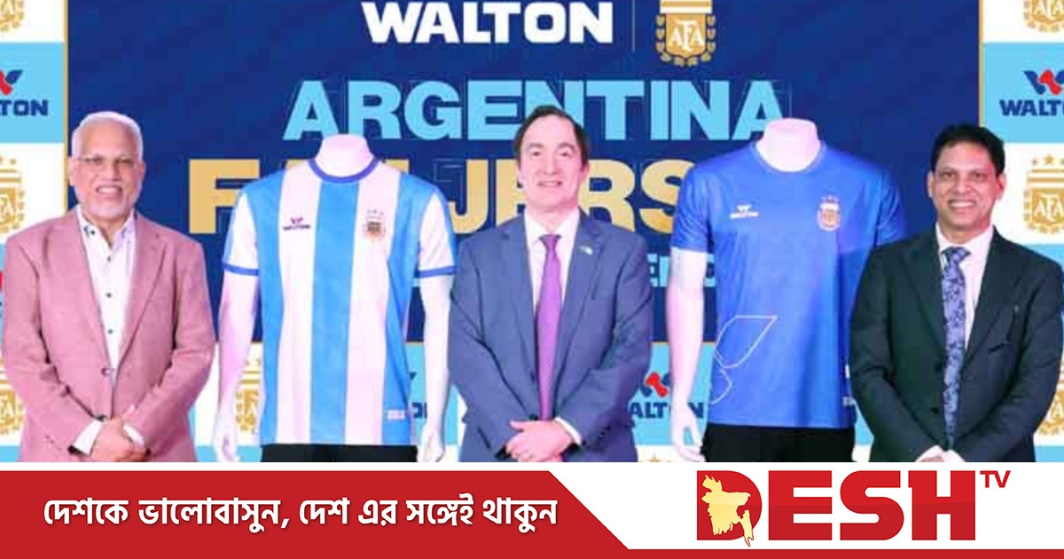 বাংলাদেশে প্রথমবারের মতো আর্জেন্টিনা জাতীয় ফুটবল দলের ফ্যান জার্সি উন্মোচন করেছে ওয়ালটন। রাজধানীর কর্পোরেট অফিসে সোমবার আয়োজিত ‘আর্জেন্টিনা ফ্যান জার্সি উন্মোচন’ শীর্ষক এক অনুষ্ঠানে জার্সিটির আনুষ্ঠানিক উন্মোচন করা হয়।
