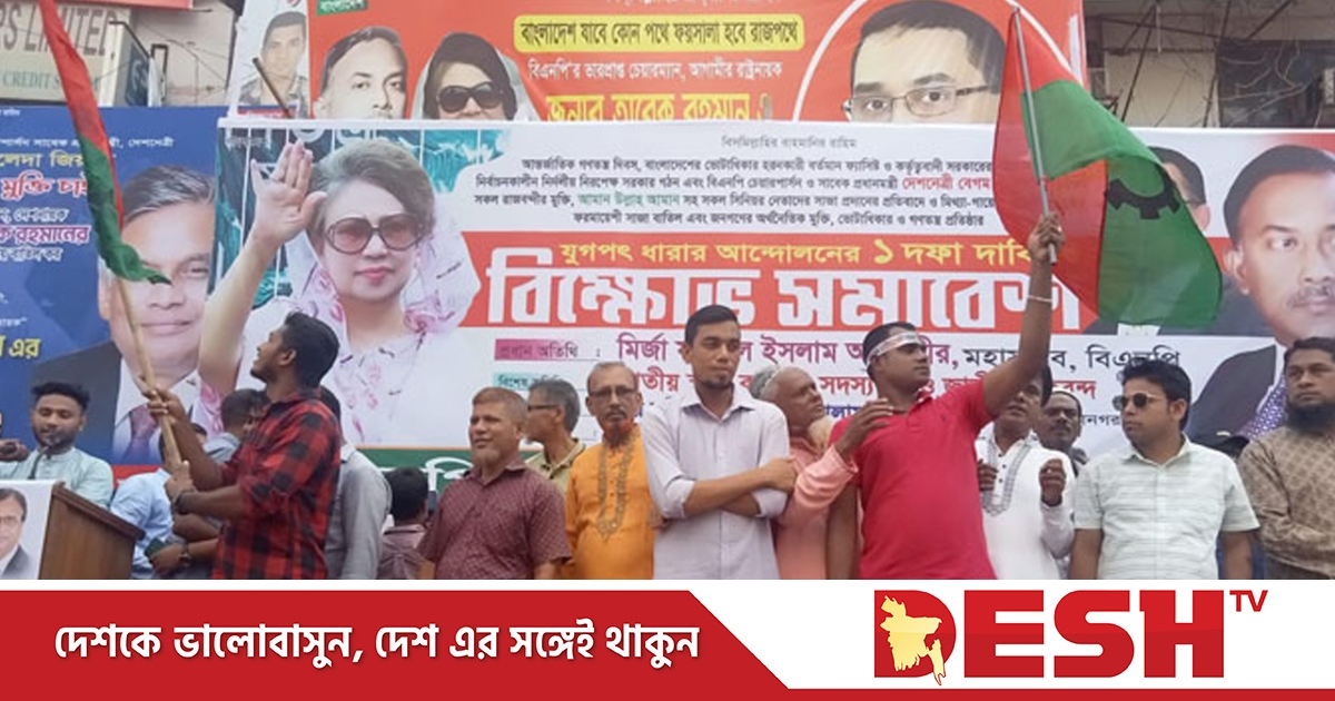 মঞ্চে সমাবেশের ব্যানারে লেখা হয়েছে, আন্তর্জাতিক গণতন্ত্র দিবস, বাংলাদেশের ভোটাধিকার হরণকারী বর্তমান ফ্যাসিস্ট, সরকারের পদত্যাগ, নির্বাচনকালীন নির্দলীয় নিরপেক্ষ সরকার গঠন, বিএনপি চেয়ারপারসন খালেদা জিয়াসহ সব রাজবন্দির মুক্তি, আমান উল্লাহ আমানসহ সব সিনিয়র নেতাদের সাজা প্রদানের প্রতিবাদে ও মিথ্যা-গায়েরি মামলা প্রত্যাহার ও গণতন্ত্র প্রতিষ্ঠার যুগপৎ ধারায় আন্দোলনের এক দফা দাবিতে বিক্ষোভ সমাবেশ।