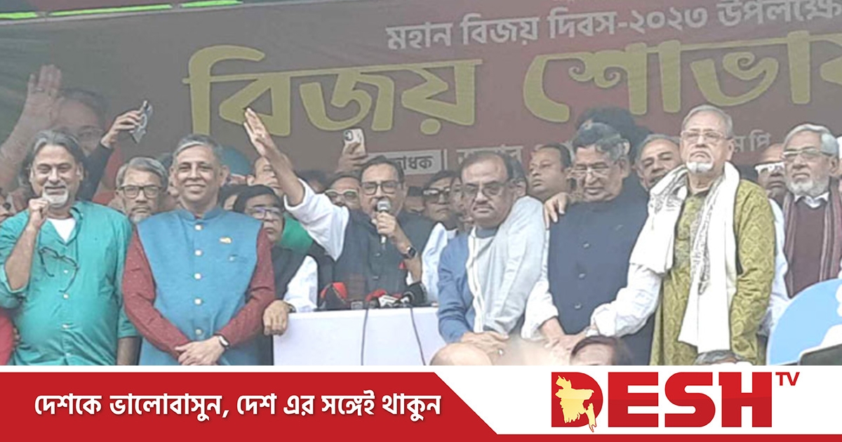 মঙ্গলবার (১৯ ডিসেম্বর) বিকেলে রাজধানীর ইঞ্জিনিয়ার ইনস্টিটিউটের সামনে আওয়ামী লীগ আয়োজিত বিজয় শোভাযাত্রা সমাবেশে তিনি এসব কথা বলেন।