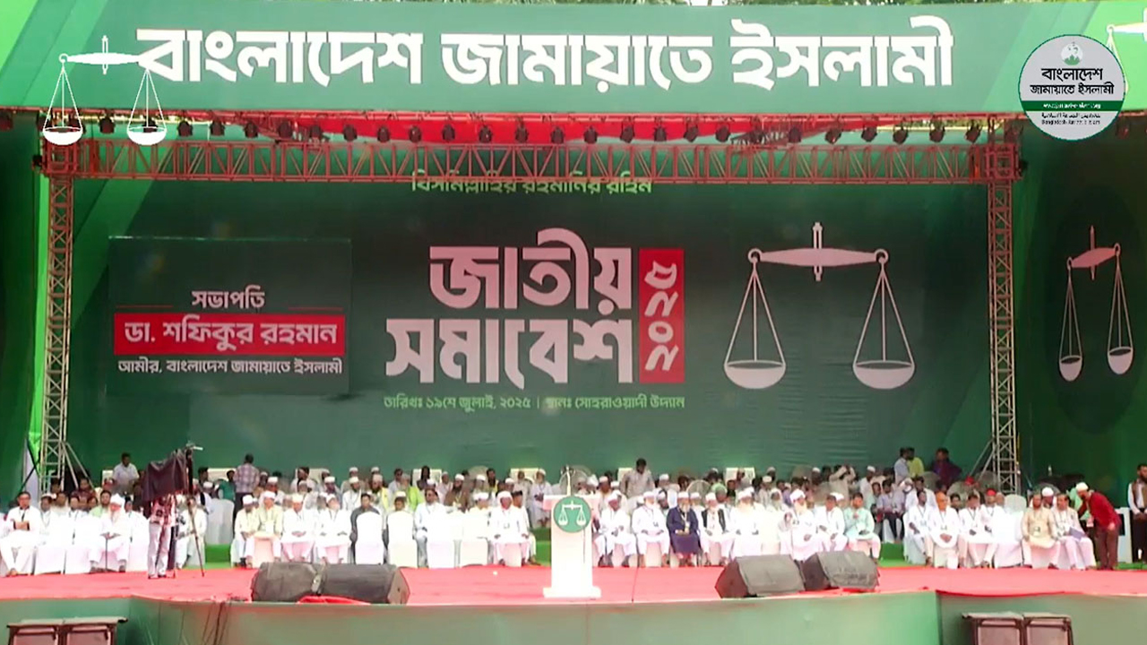 জাতীয় সংসদ নির্বাচনে পিআর পদ্ধতি, জুলাই গণহত্যার দৃশ্যমান বিচার এবং নির্বাচনের আগে লেভেল প্লেয়িং ফিল্ড নিশ্চিত করাসহ ৭ দফা দাবিতে রাজধানীর সোহরাওয়ার্দী উদ্যানে বাংলাদেশ জামায়াতে ইসলামীর জাতীয় সমাবেশ শুরু হয়েছে।