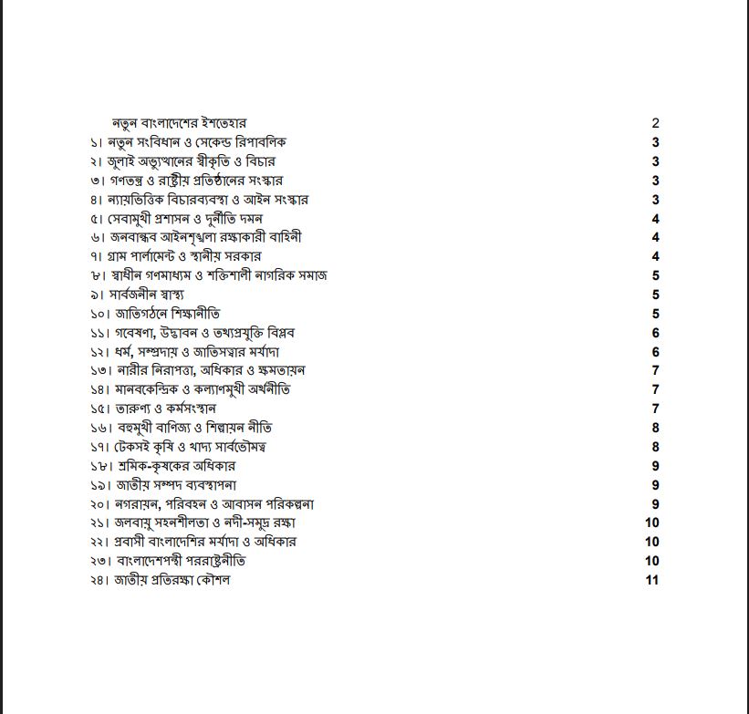২৪ দফার ইশতেহার ঘোষণা করেছে জাতীয় নাগরিক পার্টি (এনসিপি)। রোববার (৩ আগস্ট) বিকেলে কেন্দ্রীয় শহীদ মিনারে সমাবেশে ইশতেহার ঘোষণা করেন দলটির আহ্বায়ক নাহিদ ইসলাম।
