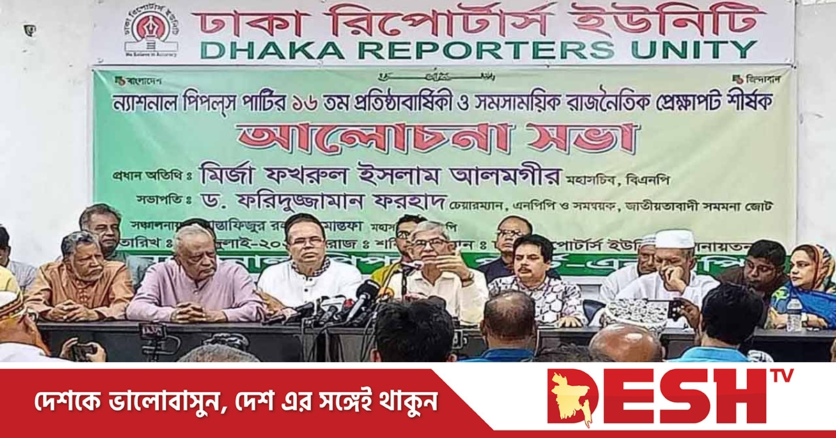 শনিবার (৮ জুলাই) ঢাকা রিপোর্টার্স ইউনিটিতে ন্যাশনাল পিপলস পার্টির ১৬তম প্রতিষ্ঠাবার্ষিকী ও সমসাময়িক রাজনৈতিক প্রেক্ষাপট শীর্ষক এক আলোচনা সভায় তিনি এ কথা বলেন।