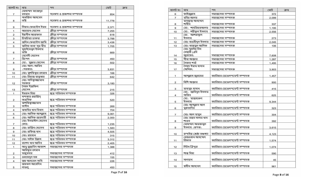 অন্যদিকে, জহুরুল হক হলে আবিদ ৩১৪, সাদিক কায়েম ৮৯৬ ভোট পেয়েছেন। জিএস পদে ফরহাদ ৬৭০, হামীম ৪০৯টি ভোট পেয়েছেন।