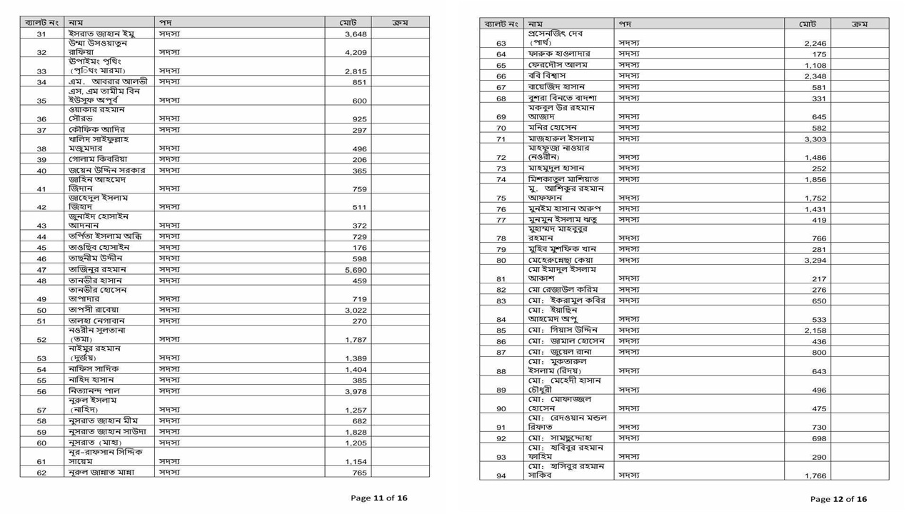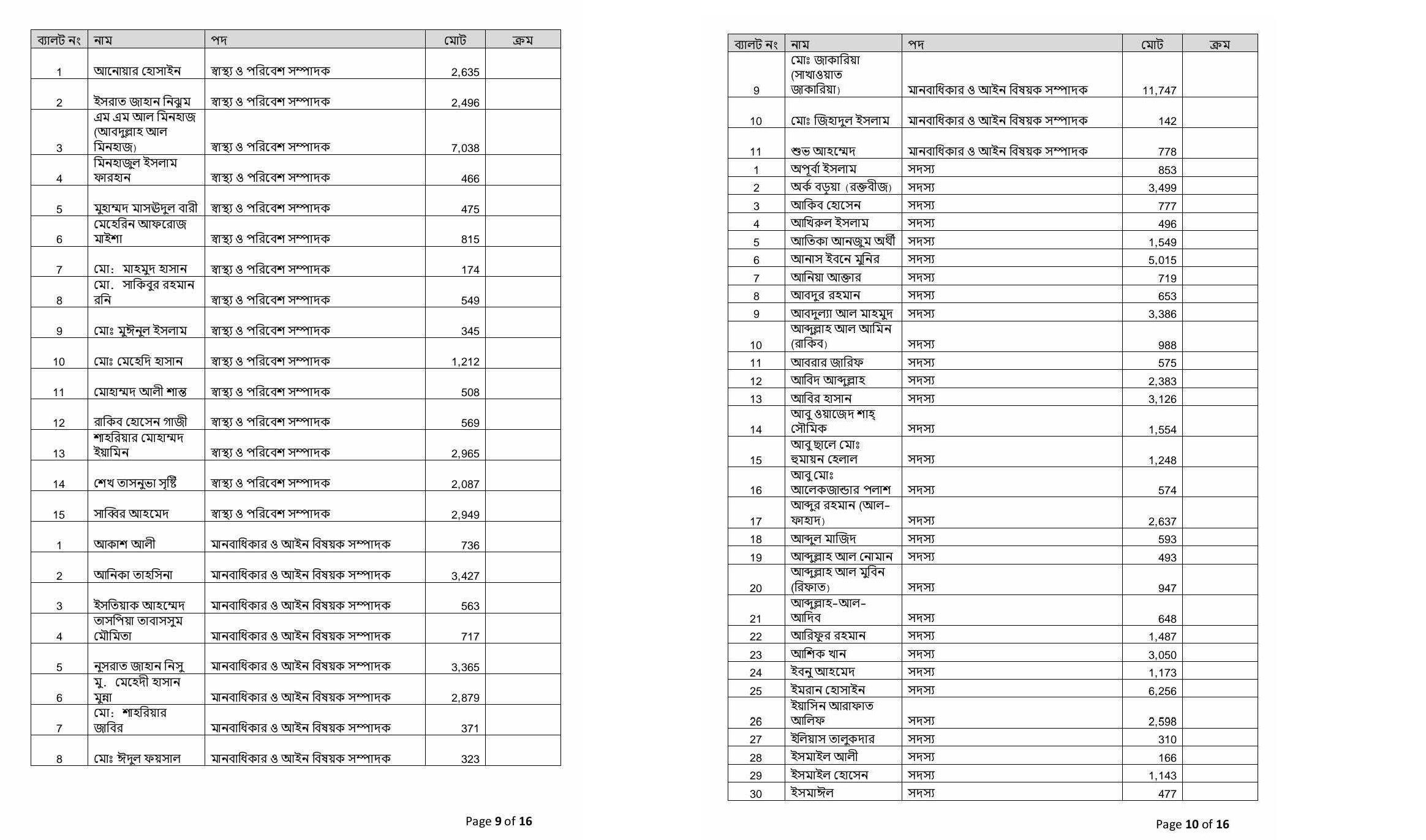কুয়েত মৈত্রী হলে সাদিক কায়েম ৬২৬, আবিদ ২১০, উমামা ২২৬ ভোট পেয়েছেন।
