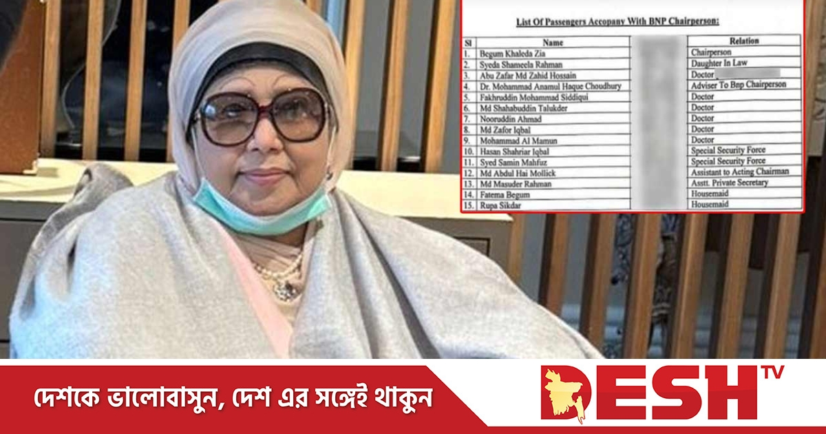 খালেদা জিয়ার সঙ্গে চিকিৎসকসহ মোট ১৪ জন সফরসঙ্গী লন্ডনে যাবেন। তারা হলেন- খালেদা জিয়ার ছোট ছেলে কোকোর স্ত্রী সায়েদা শর্মীলা রহমান, বিএনপির স্থায়ী কমিটির সদস্য ডা. এ জেড এম জাহিদ হোসেন, বিএনপি চেয়ারপারসনের উপদেষ্টা ডা. মোহাম্মদ আনামুল হক চৌধুরী, ডা. ফখরুদ্দীন মোহাম্মদ সিদ্দিকী, ডা. শাহাবুদ্দীন তালুকদার, ডা. নুরুদ্দীন আহমদ, ডা. জাফর ইকবাল, ডা. মোহাম্মদ আল মামুন। আরও থাকবেন হাসান শাহরিয়ার ইকবাল, সৈয়দ শামীন মাহফুজ, আব্দুল হাই মল্লিক, মাসুদার রহমান, ফাতেমা বেগম ও রুপা শিকদার।