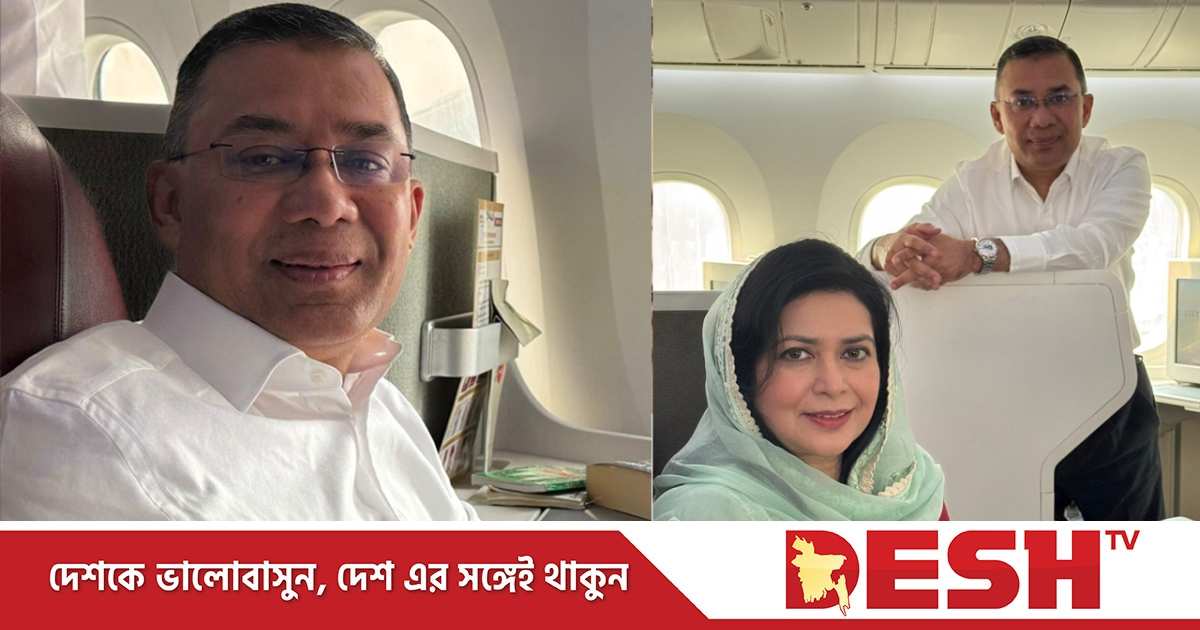 পোস্টে তারেক রহমান দুটি ছবিও যুক্ত করেন। একটিতে তাঁকে উড়োজাহাজের ভেতরে বসে থাকা অবস্থায় দেখা যাচ্ছে। অন্য ছবিটিতে তাঁর সঙ্গে স্ত্রী জুবাইদা রহমানও রয়েছেন।