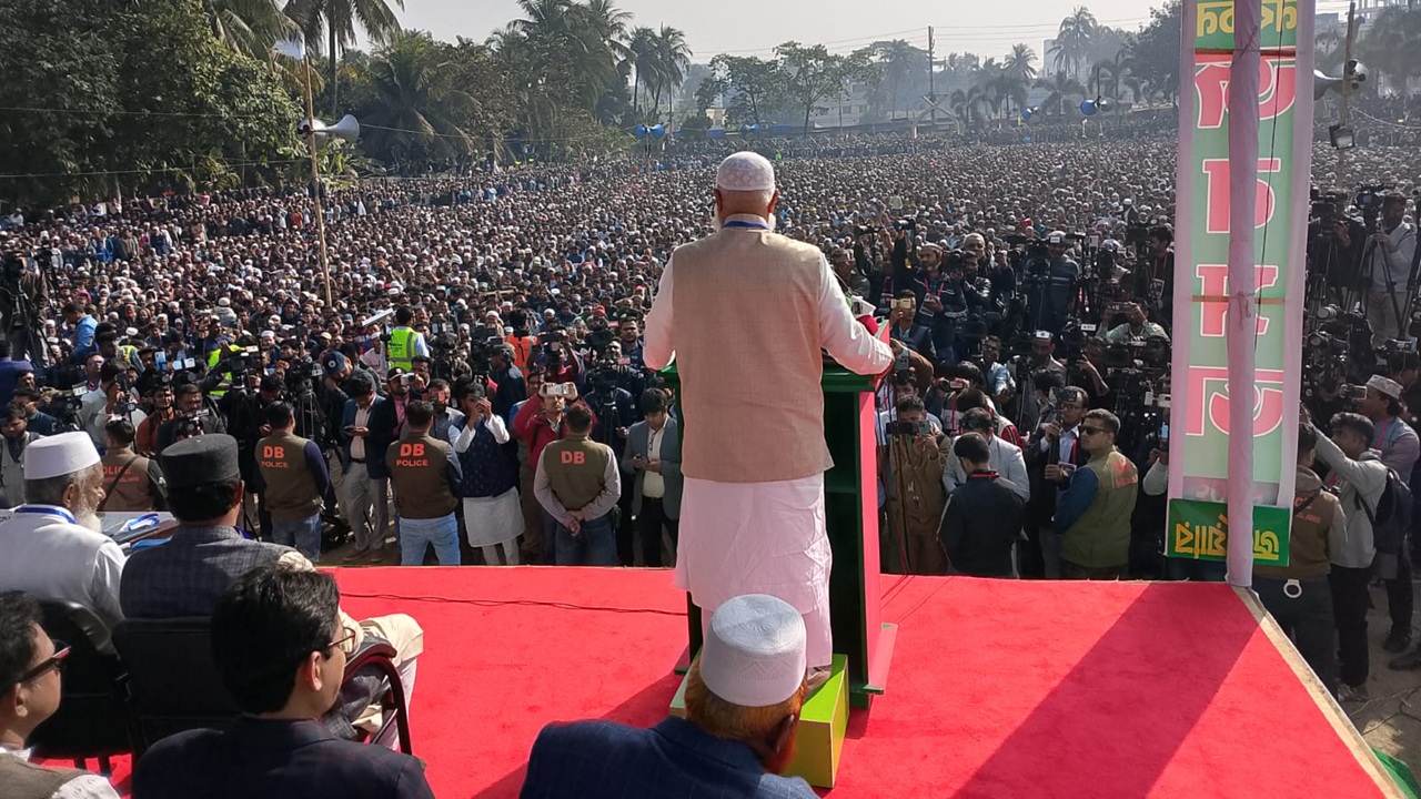 গোটা বাংলাদেশকে বিভিন্ন সিন্ডিকেট আঁকড়ে ধরেছে উল্লেখ করে জামায়াত আমির বলেন, ‘ক্ষমতায় গেলে সব সিন্ডিকেটের মূলোৎপাটন করা হবে৷ বেকার ভাতা নয়, বেকারদের দক্ষ করে কর্মমুখী করতে চাই। নারীদের জন্য পৃথক যোগাযোগ ব্যবস্থা ও গণ শৌচাগারের ব্যবস্থা করা হবে। সব ধর্মের জন্য নিরাপত্তার দুয়ার খুলে দেয়া হবে।’ এর আগে জনসভায় জামায়াতের সেক্রেটারি জেনারেল মিয়া গোলাম পরওয়ার বলেন, ‘ইসলামি চেতনা, জুলাইয়ের চেতনা এবং মুক্তিযুদ্ধের চেতনায় মানবিক রাষ্ট্র গঠন করবে জামায়াত। একটি অপশক্তি জুলাই সনদ বাস্তবায়ন না করে আবার দুর্নীতি-অপশাসন ফিরিয়ে আনতে গণভোটে না ভোটের পক্ষে ক্যাম্পেইন করছে।’