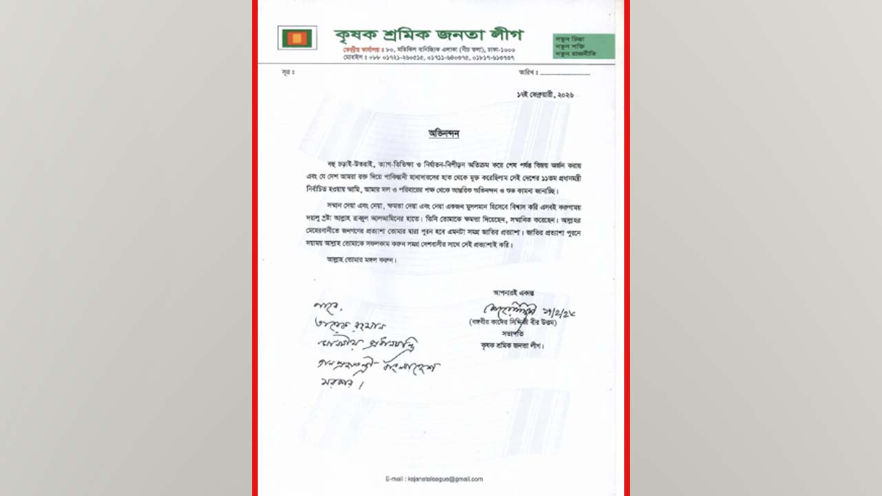 মঙ্গলবার (১৭ ফেব্রুয়ারি) সন্ধ্যায় কাদের সিদ্দিকী একপত্রে তারেক রহমানকে অভিনন্দন জানান।