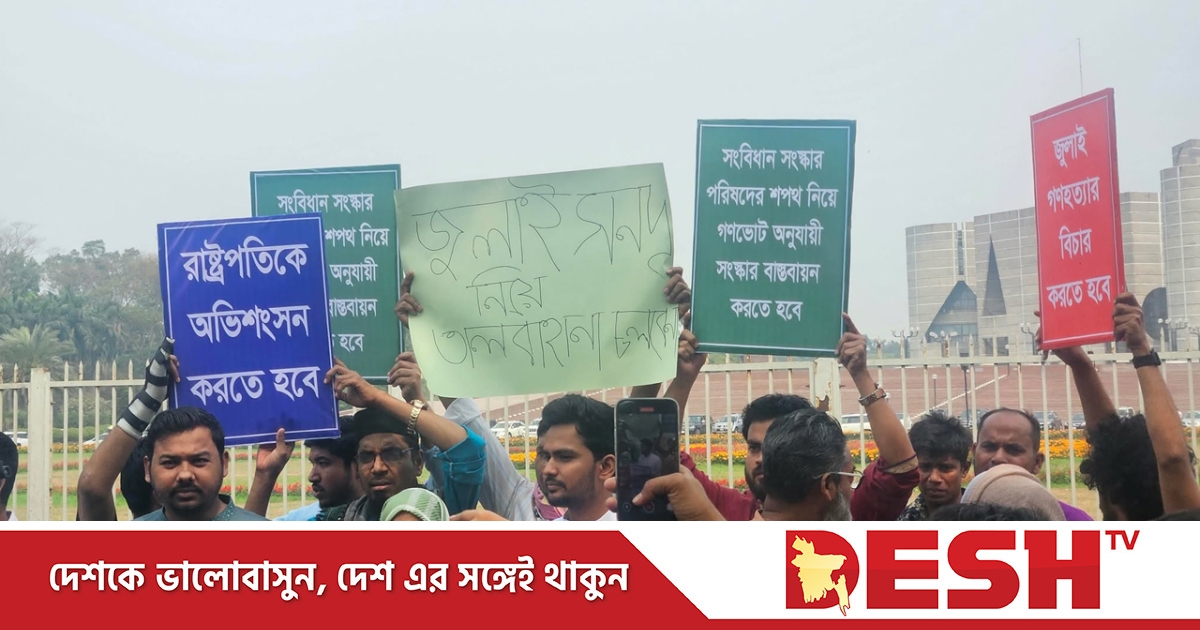 রাষ্ট্রপতির অভিশংসন ও সব সংসদ সদস্যদর সংবিধান সংস্কার পরিষদের শপথ গ্রহণসহ তিন দাবিতে জাতীয় সংসদ ভবনের সামনে অবস্থান নিয়েছেন জাতীয় নাগরিক পার্টির (এনসিপি) নেতাকর্মীরা।