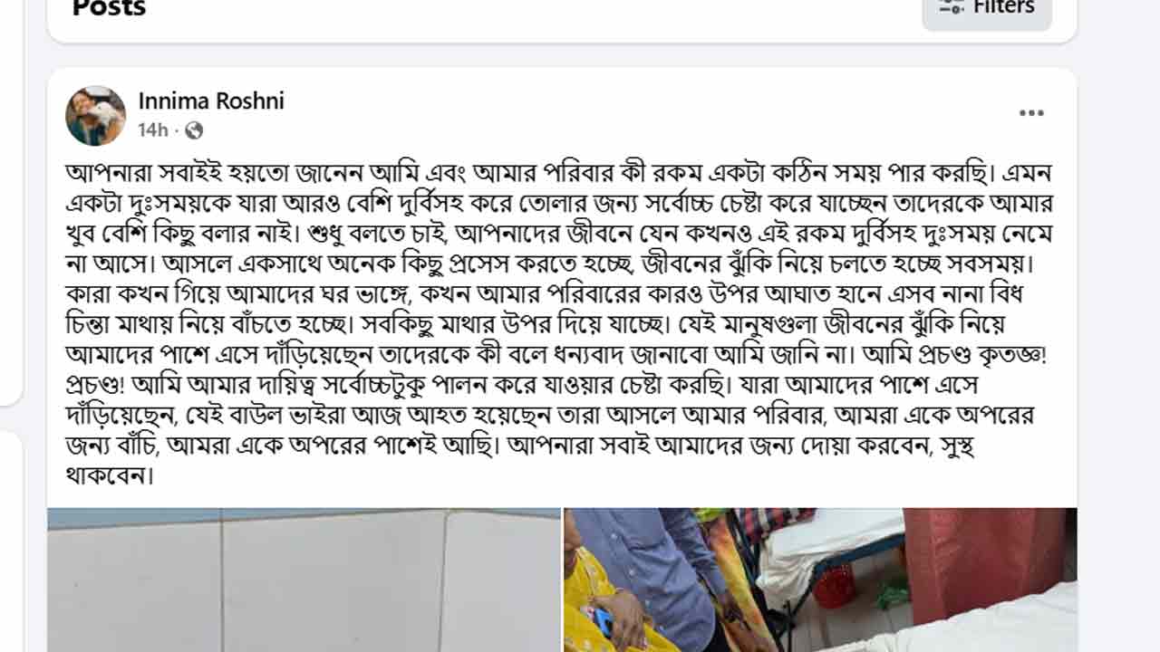 ফেসবুকে দেওয়া এক পোস্টে তিনি বলেন, ‘আসলে একসঙ্গে অনেক কিছু প্রসেস করতে হচ্ছে, জীবনের ঝুঁকি নিয়ে চলতে হচ্ছে সবসময়। কারা কখন গিয়ে আমাদের ঘর ভাঙে, কখন আমার পরিবারের কারো ওপর আঘাত হানে; এসব নানাবিধ চিন্তা মাথায় নিয়ে বাঁচতে হচ্ছে। সবকিছু মাথার ওপর দিয়ে যাচ্ছে।’