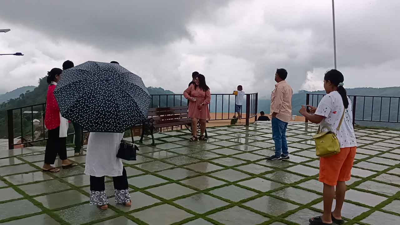 পার্কের সান বাঁধানো বিশাল মাঠের চারপাশ জুড়ে পাহাড়ের ভেতর থেকে হঠাৎ করে এক দল মেঘ ছুটে এসে আমাদের ভিজিয়ে দিয়ে যায়। তবে ৪/৫ মিনিট পর আকাশ পরিষ্কার হয়ে গেলেও দূরের পাহাড়ে মেঘগুলোকে পাহাড়ের গাঁয় হেলান দিয়ে অপেক্ষা করতে দেখা যায়। আবারও হয়তো ছুটে আসবে যে কোন সময়। এমন দৃশ্য আসলে ক্যামেরাবন্দি করাও সম্ভব নয়। কিছু ধারণা নেয়া যায় মাত্র। ছবি শুধু ছবিই।