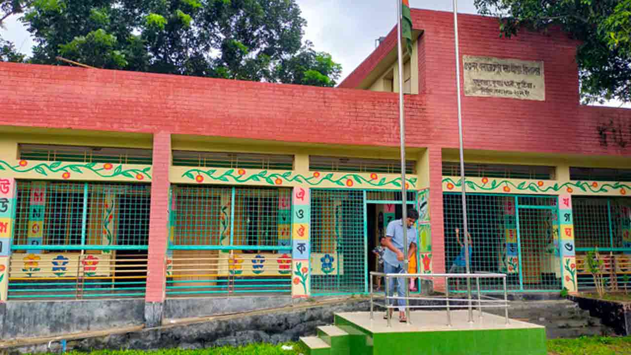 ঘড়ির কাঁটায় সকাল ৯টা বেজে ২৫ মিনিট। বিদ্যালয়ে ক্লাসের তালা খুলছে শিশু শিক্ষার্থীরা। ৯টা ৩৪ মিনিটে পতাকা উত্তোলন করেন বিদ্যালয়ের দপ্তরি। তখনও আসেননি কোনো শিক্ষক। শ্রেণিকক্ষে শিক্ষকদের জন্য অপেক্ষা করছে প্রাক-প্রাথমিক, প্রথম ও দ্বিতীয় শ্রেণির অর্ধশতাধিক শিক্ষার্থী। বিদ্যালয়ে সাংবাদিক আসার খবরে শিক্ষক এসে পৌঁছান সকাল ১০টারও পরে। অথচ সরকারি নিয়মানুযায়ী সকাল ৯টা ১৫ মিনিটের মধ্যে বিদ্যালয়ে সব শিক্ষক-কর্মচারী উপস্থিত থাকার কথা।