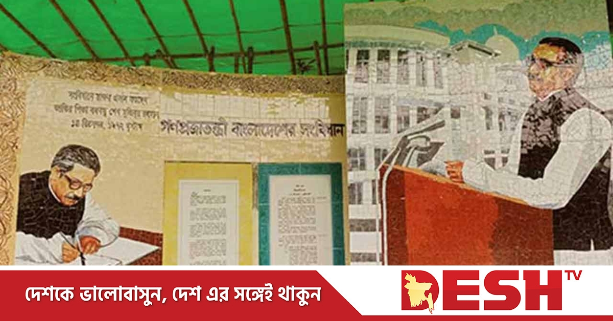 স্মারক স্তম্ভে ১৯৭২ সালের ১৪ ডিসেম্বর সংবিধানে জাতির পিতা বঙ্গবন্ধু শেখ মুজিবুর রহমানের সইয়ের ছবি এবং ১৯৭২ সালের ১৮ ডিসেম্বর সুপ্রিম কোর্ট প্রাঙ্গণে দাঁড়িয়ে ভাষণের ছবি ম্যুরাল হিসেবে উপস্থাপন করা হয়েছে। এছাড়া স্তম্ভে সংবিধানের প্রস্তাবনা এবং সংবিধানের ৯৪ এবং ৯৫ অনুচ্ছেদ উদ্ধৃত করা হয়।