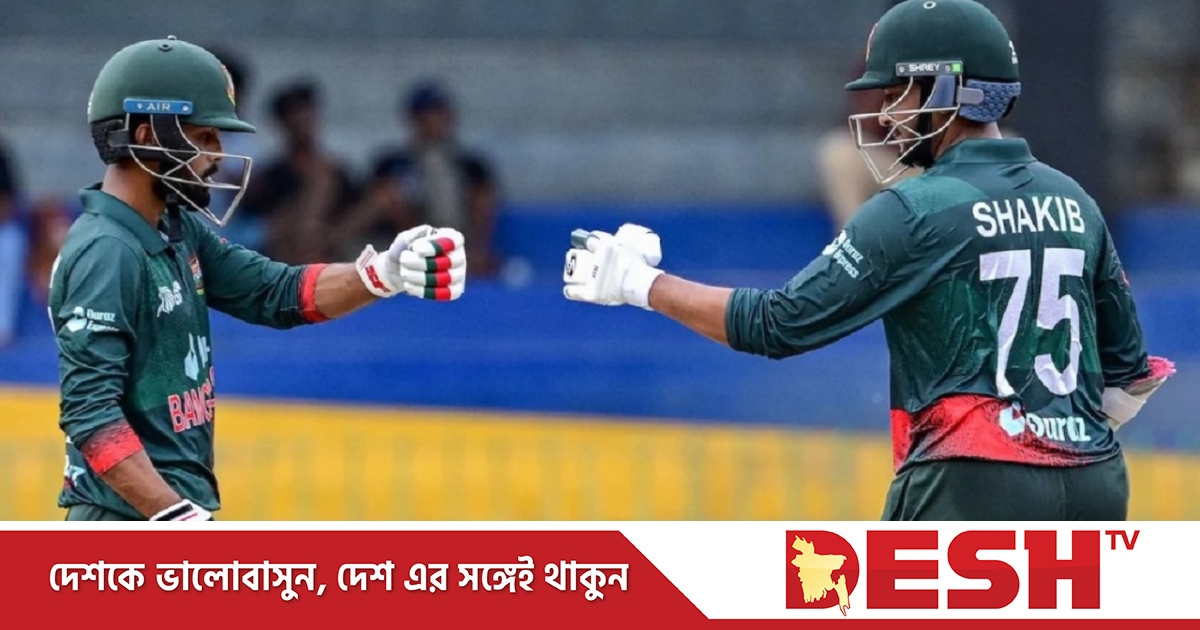 এই প্রতিবেদন লেখা পর্যন্ত বাংলাদেশের সংগ্রহ ২৮ ওভারতে ৪ উইকেট হারিয়ে ১৩০ রান। সাকিব ৬১ ও হৃদয় অপরাজিত আছেন ২৭ রানে।