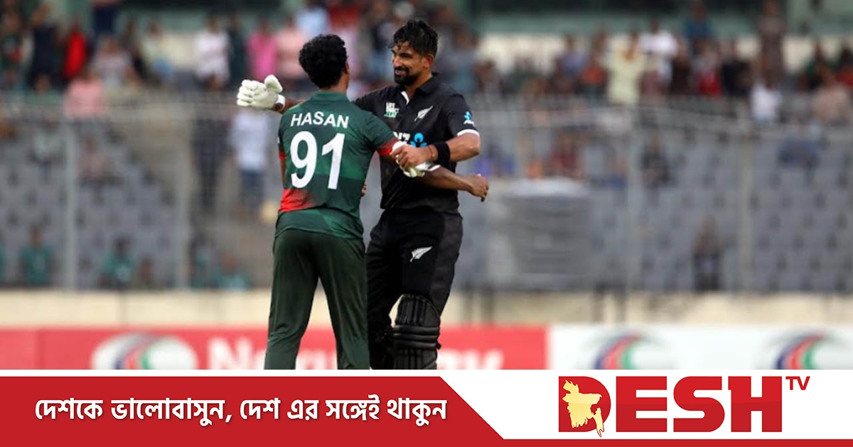 দারুণ এক দৃষ্টান্ত স্থাপন করল বাংলাদেশ। ইনিংসের ৪৬তম ওভারের চতুর্থ বল করার জন্য দৌড় শুরু করেন হাসান মাহমুদ। নন-স্ট্রাইক প্রান্তে থাকা ইশ সোধি তখন এক পা এগিয়ে যান। তাতেই হাসান মাহমুদ থেমে গিয়ে স্টাম্প ভাঙেন।