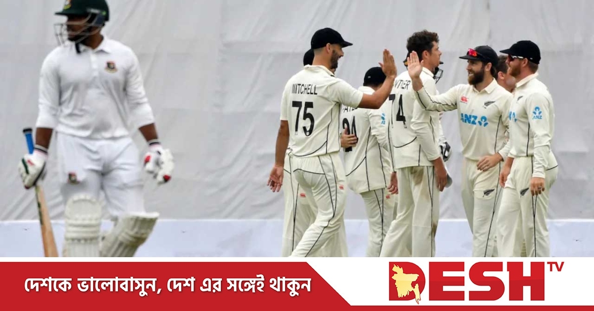 দলের অন্যতম অভিজ্ঞ ব্যাটার মুমিনুল হকও (৫) সাজঘরে ফেরেন প্যাটেলের বলে টম ব্লান্ডেলের গ্লাভসে ক্যাচ দিয়ে। সিলেটে সেঞ্চুরি হাঁকানো অধিনায়ক নাজমুল হোসেন শান্ত আজ ৯ রান করে লেগ বিফোর হন স্যান্টনারের বল সুইপ করতে গিয়ে।