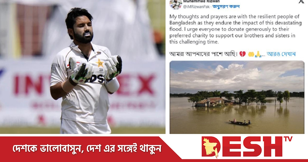 পাকিস্তানে রিজওয়ান যখন বাংলাদেশের প্রতিপক্ষ, তখন বাংলাদেশ ভাসছে ভারত থেকে নেমে আসা বন্যার পানিতে। তীব্র বন্যায় দেশের ১২ জেলায় লাখো মানুষ পার করছেন মানবেতর জীবন। রাওয়ালপিন্ডি টেস্টের চতুর্থ দিনে এসে বাংলাদেশের সেই মানুষদেরই স্মরণ করলেন পাকিস্তানের এই উইকেটরক্ষক ব্যাটার।