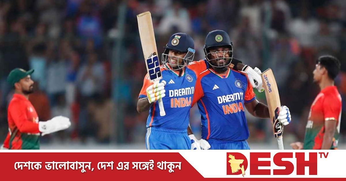 ১৭৩ রানের জুটির পর ভাঙে স্যামসন-সূর্যকুমারের জুটি। মুস্তাফিজুর রহমানের শিকার হওয়া স্যামসন ক্যাচ দেন মেহেদীকে। ৪৭ বলে ১১১ রানের ইনিংসে ১১টি চার ও ৮টি ছক্কা মারেন উইকেটরক্ষক ব্যাটার। একটু পর সূর্যকুমারও ক্যাচ তুলে বিদায় নেন। বিদায়ী রিয়াদের শিকার হওয়ার আগে ৩৫ বলে ৭৫ রান করেন তিনি।