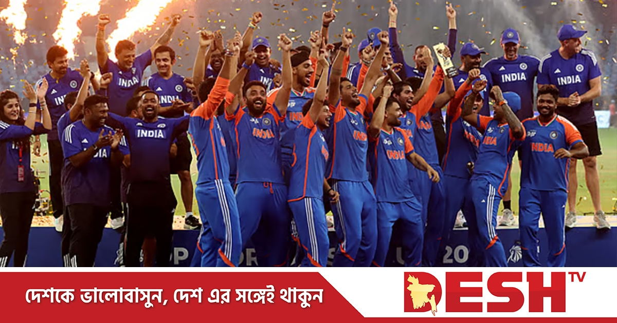 নাকভি নেমে যাওয়ার পর ভারতীয় ক্রিকেটাররা মঞ্চে উঠে ট্রফি ছাড়াই ছবি তুলেছেন।