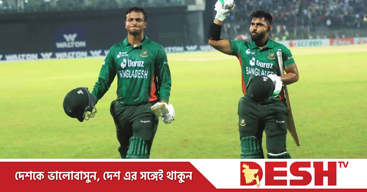দারুণ শুরুর পর মাত্র ৯ রানে ৩ উইকেট হারিয়ে দল যখন বিপাকে তখন সাকিব সামাল দেন হৃদয়কে সঙ্গে নিয়ে। হৃদয় আউট হয়ে গেলেও সাকিব অপরাজিত ছিলেন ১৮ রানে। সঙ্গে ২ উইকেট নিয়ে হয়েছেন ম্যাচ সেরা। শুধু তাই নয় দুই ম্যাচে ৩৭ রান ও ৪ উইকেট নিয়ে সাকিব হয়েছেন সিরিজ সেরাও।
