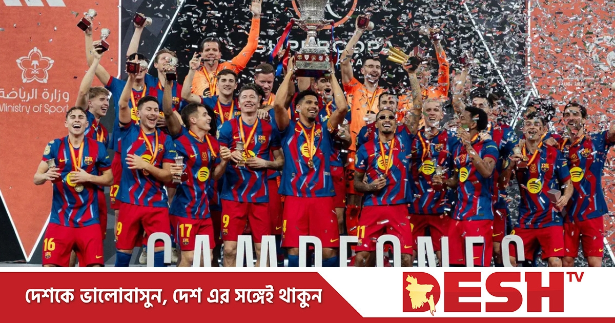 সৌদি আরবের জেদ্দায় স্থানীয় সময় রোববার (১১ জানুয়ারি) রাতে অনুষ্ঠিত ফাইনালে রিয়াল মাদ্রিদকে ৩-২ গোলে হারায় কাতালানরা। এর মাধ্যমে স্প্যানিশ সুপার কাপে রেকর্ড ১৬তমবারের মতো চ্যাম্পিয়ন হলো বার্সেলোনা। টানা দ্বিতীয় মৌসুমে ফাইনালে রিয়ালকে হারিয়ে শিরোপা জিতল তারা। গত মৌসুমে একই প্রতিপক্ষকে ৫-২ গোলে হারিয়েছিল বার্সা।