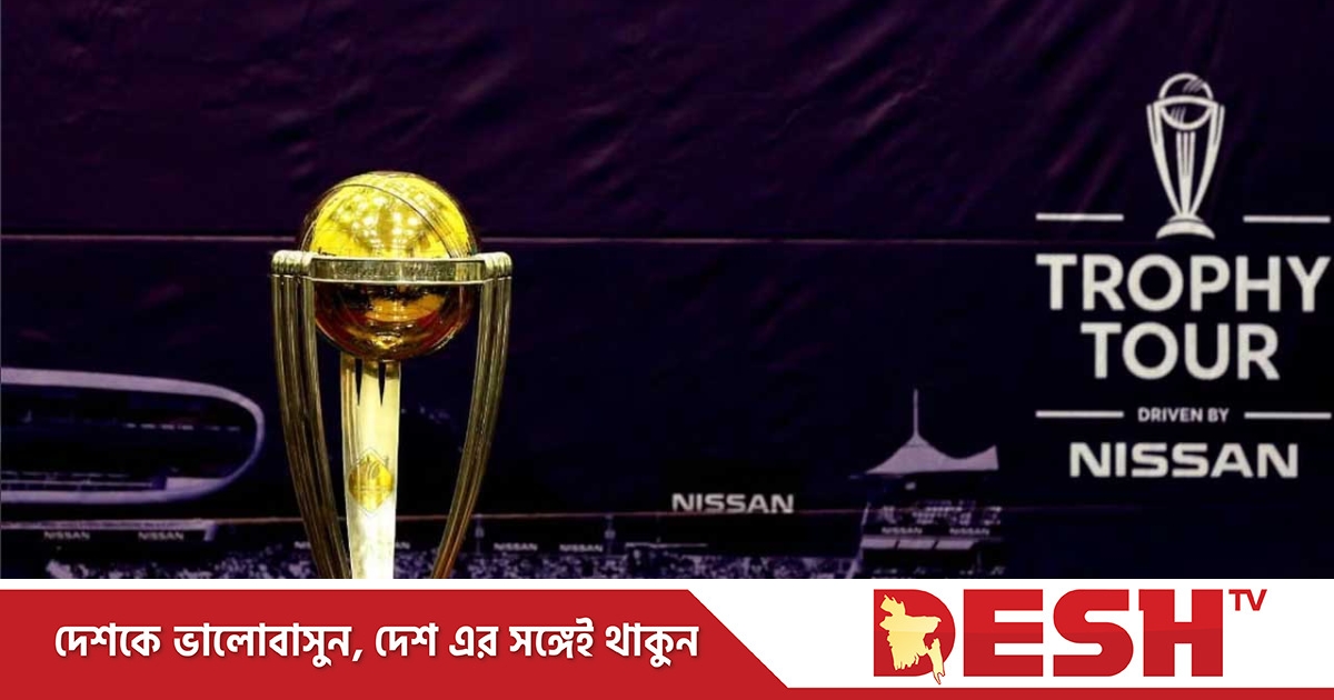ভারতে ওয়ানডে বিশ্বকাপ শুরু হতে বাকি আর দুই মাস। তার আগে বিশ্ব ভ্রমণ করছে বিশ্বকাপের ট্রফি। বেশ কয়েকটি দেশ ঘুরে আজ রোববার মধ্যরাতে ট্রফি আসছে বাংলাদেশে।