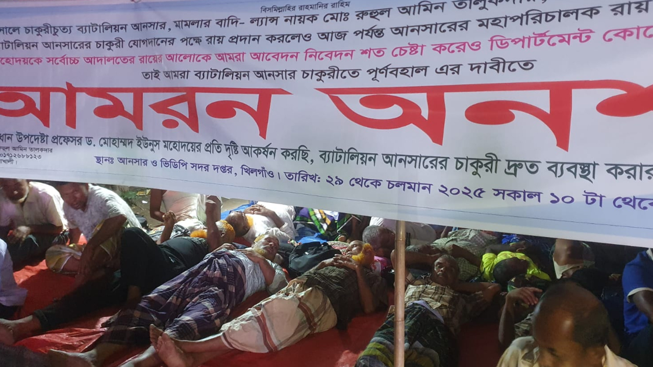 ১৯৯৪ সালে বিভিন্ন অধিকার আদায়ের আন্দোলনে চাকরিচ্যুত ব্যাটালিয়ন আনসারবাহিনীর সদস্যরা  প্রাপ্য পেনশন সুযোগ-সুবিধা ও যোগ্যদের পূনর্বহালের দাবিতে রাজধানীর খিলগাও আনসার বিজিপির সদর দপ্তরের এক মাস যাবত আমরণ অনশন করছেন।