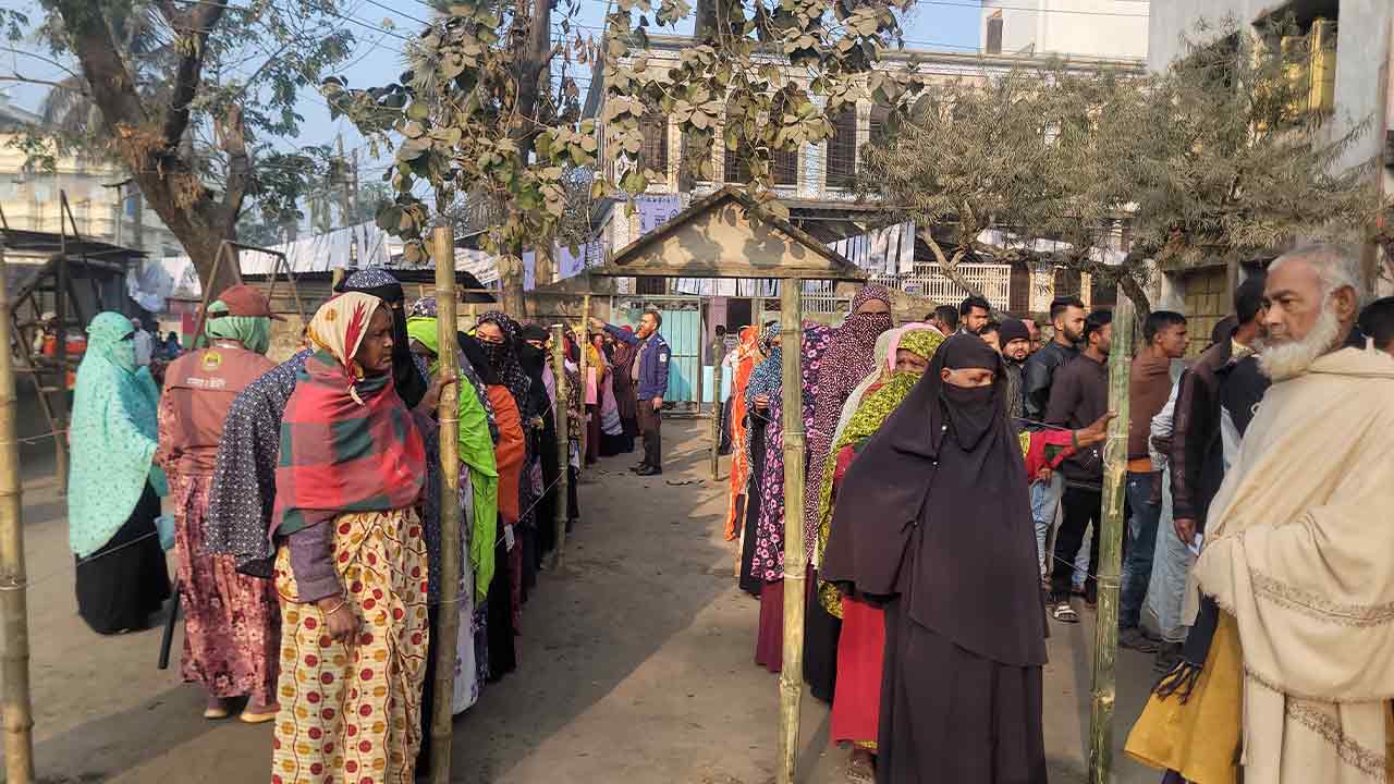শেরপুরে ভোট দিতে নারী ভোটারদের ব্যাপক উপস্থিতি