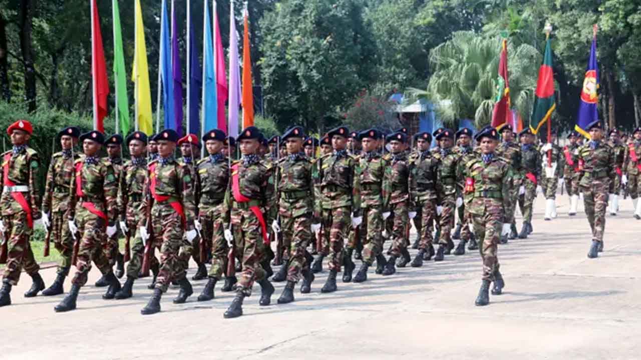 বাংলাদেশ সেনাবাহিনীর ইস্ট বেঙ্গল রেজিমেন্ট ও আর্মার্ড কোরের রিক্রুট ব্যাচ-২০২৫ এর কুচকাওয়াজ অনুষ্ঠিত