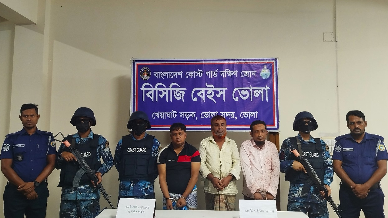ভোলায় যৌথ অভিযানে অস্ত্রসহ আটক ৩