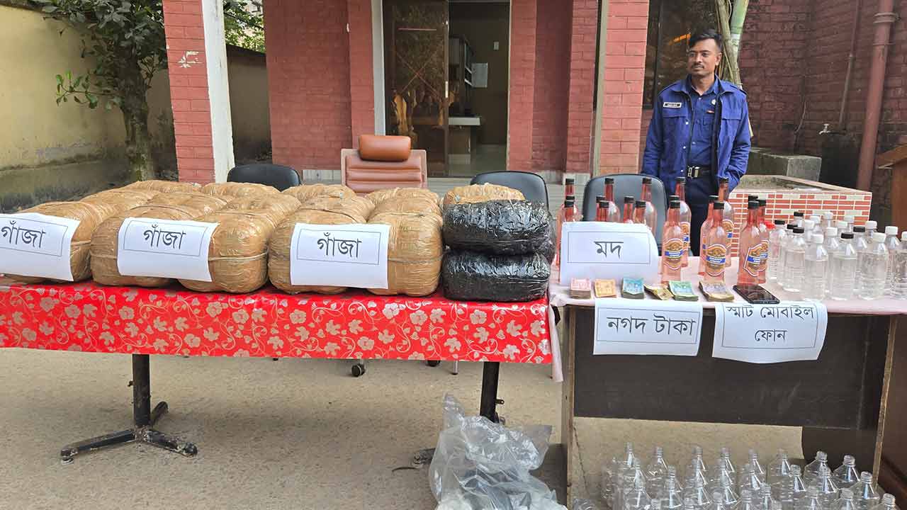 নওগাঁয় বিপুল পরিমাণ বাংলা মদ ও ৭০ কেজি গাঁজা উদ্ধার, গ্রেপ্তার ২