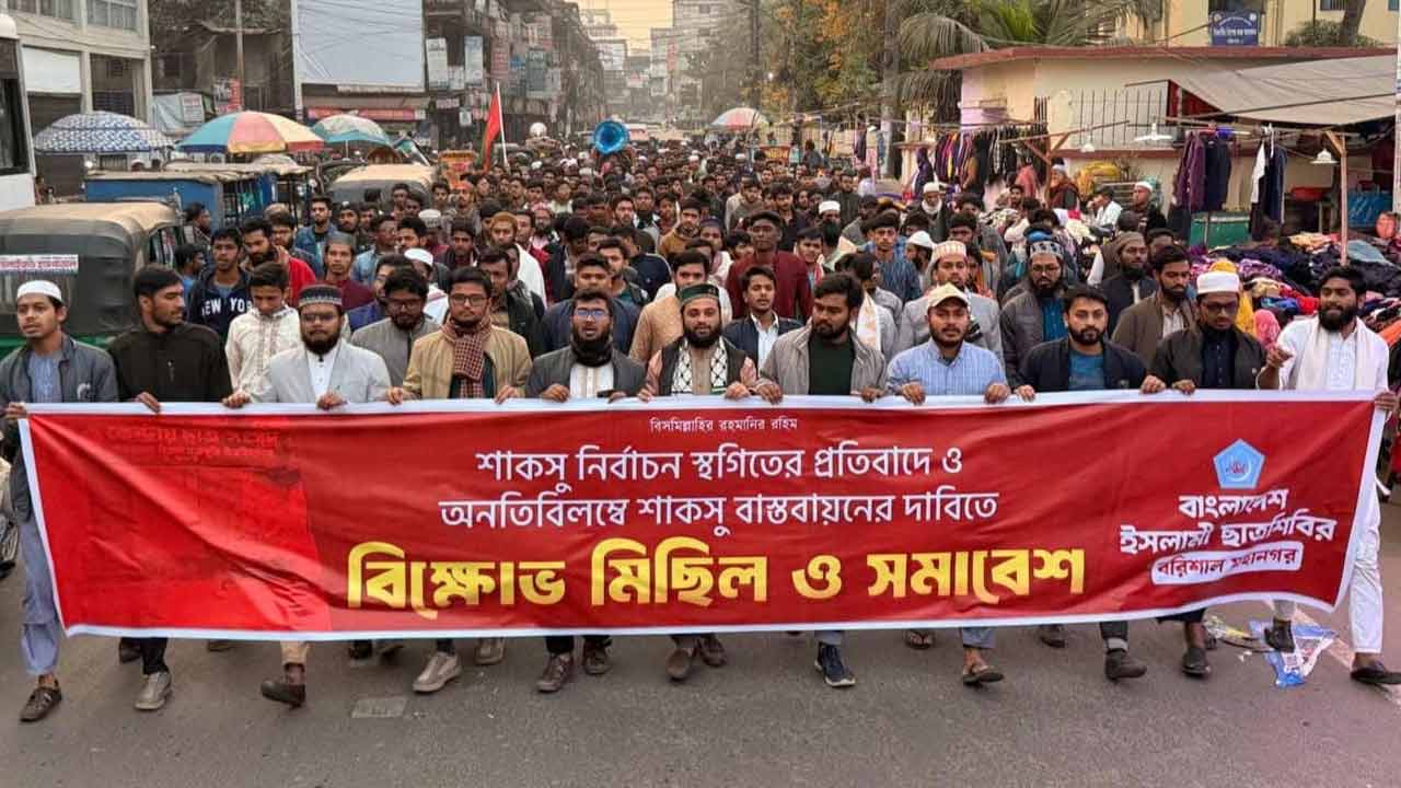 শাকসু বাস্তবায়নের দাবিতে বরিশাল মহানগর শিবিরের বিক্ষোভ মিছিল