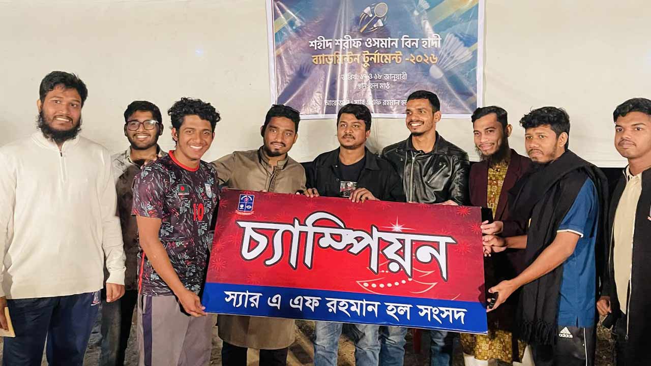 স্যার এ এফ রহমান হল সংসদ কর্তৃক আয়োজিত ‘শহীদ ওসমান হাদি স্মৃতি ব্যাডমিনটন টুর্নামেন্ট’ সম্প্রতি অনুষ্ঠিত হয়েছে। শহীদ ওসমান হাদির স্মৃতিতে অনুষ্ঠিত এই টুর্নামেন্টে হলের আবাসিক ও অনাবাসিক শিক্ষার্থীরা অংশগ্রহণ