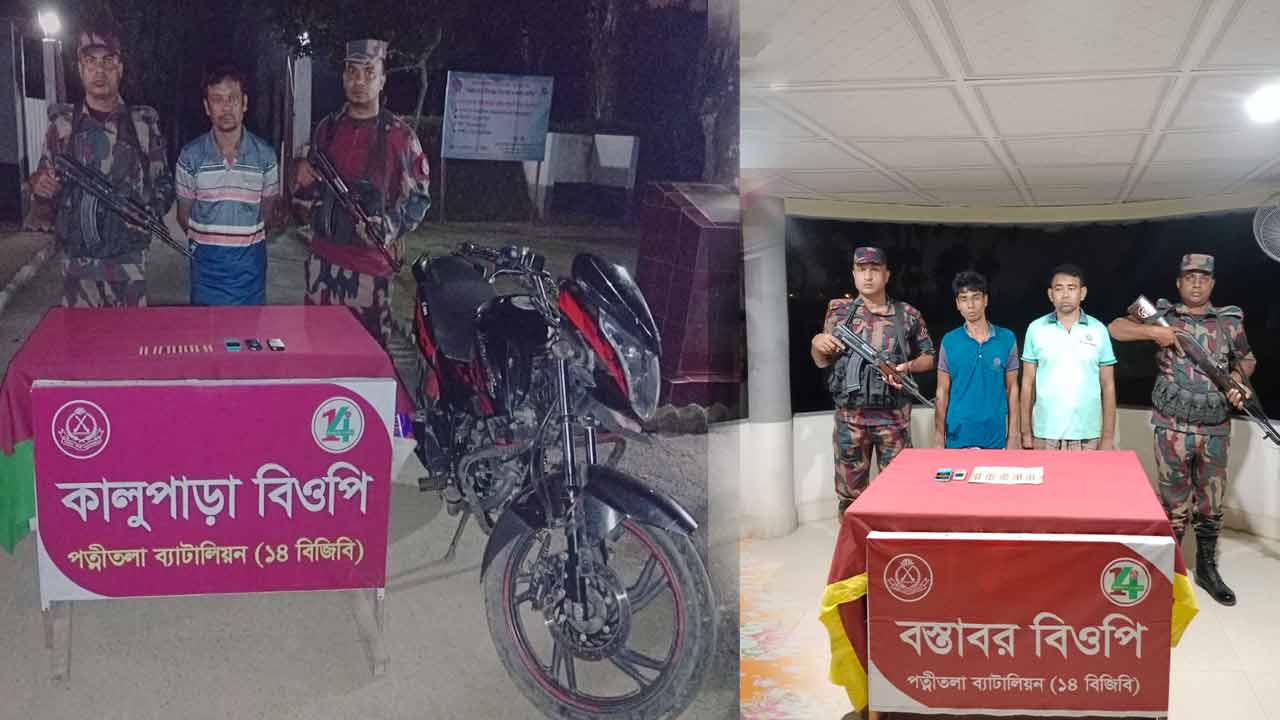 নওগাঁর ধামইরহাট ও পত্নীতলা সীমান্ত এলাকায় পৃথক অভিযানে ১২৪ পিস ভারতীয় নেশাজাতীয় ট্যাপেন্টাডল মাদকসহ তিন চোরাকারবারীকে গ্রেপ্তার করেছে বিজিবি। এ সময় দুটি মোটরসাইকেল ও পাঁচটি মোবাইল ফোন জব্দ করা হয়।