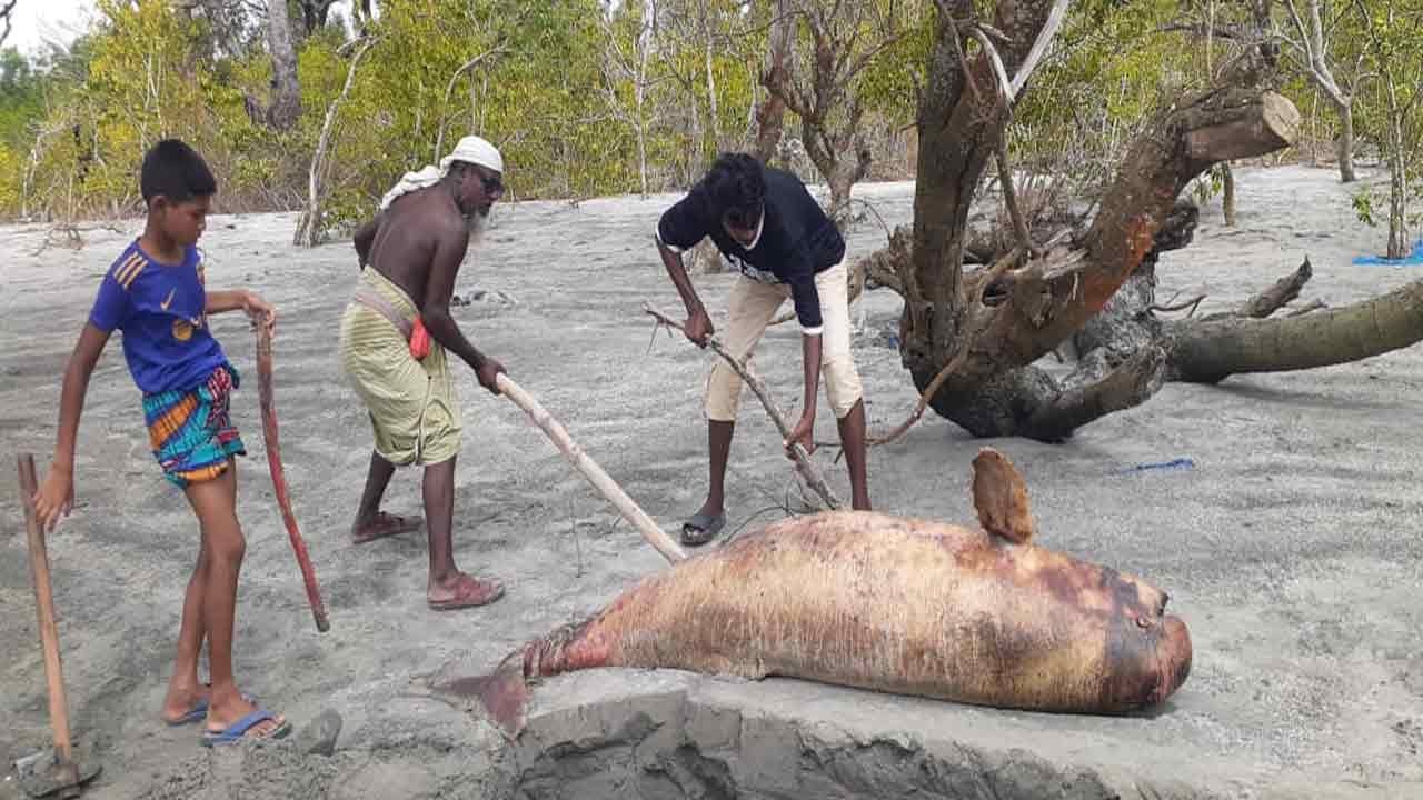 সৈকতে ভেসে এলো বোটলনোজ প্রজাতির মৃত ডলফিন