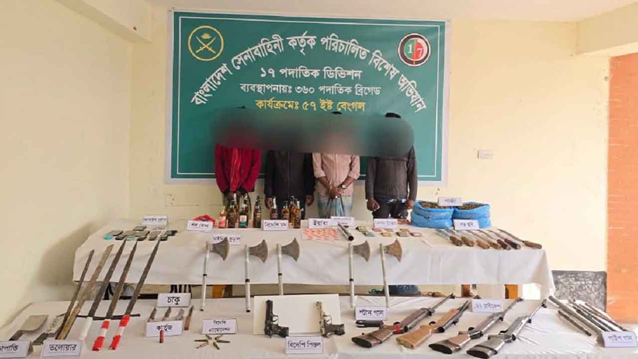 সুনামগঞ্জে যৌথ বাহিনীর অভিযানে অস্ত্রসহ মাদক উদ্ধার
