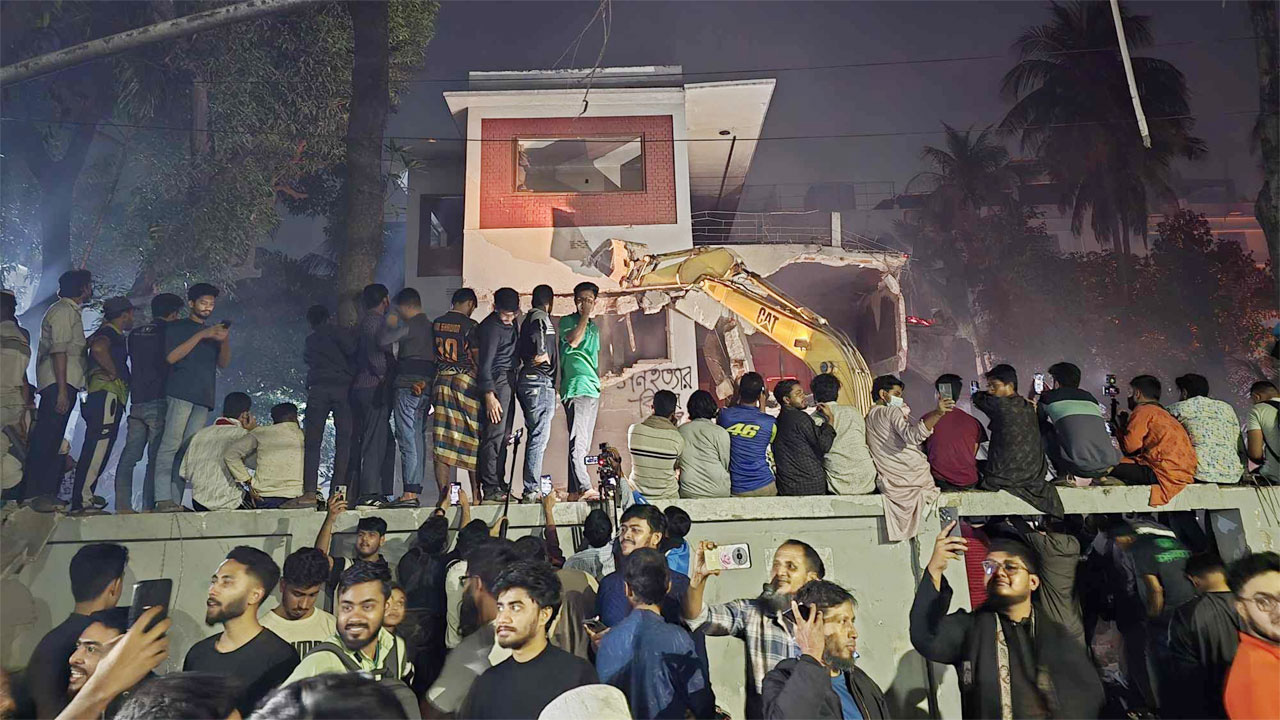 সাবেক প্রধানমন্ত্রী শেখ হাসিনার বক্তৃতাকে কেন্দ্র করে ছড়িয়ে পড়া উত্তেজনায় বিক্ষুব্ধ ছাত্র-জনতা রাতভর ভাংচুর করেছে ধানমন্ডি ৩২ নম্বরের শেখ মুজিবের বাড়ি। একপর্যায়ে করা হয় অগ্নিসংযোগ। পরে ক্রেন, এক্সকাভেটর ও দুটি