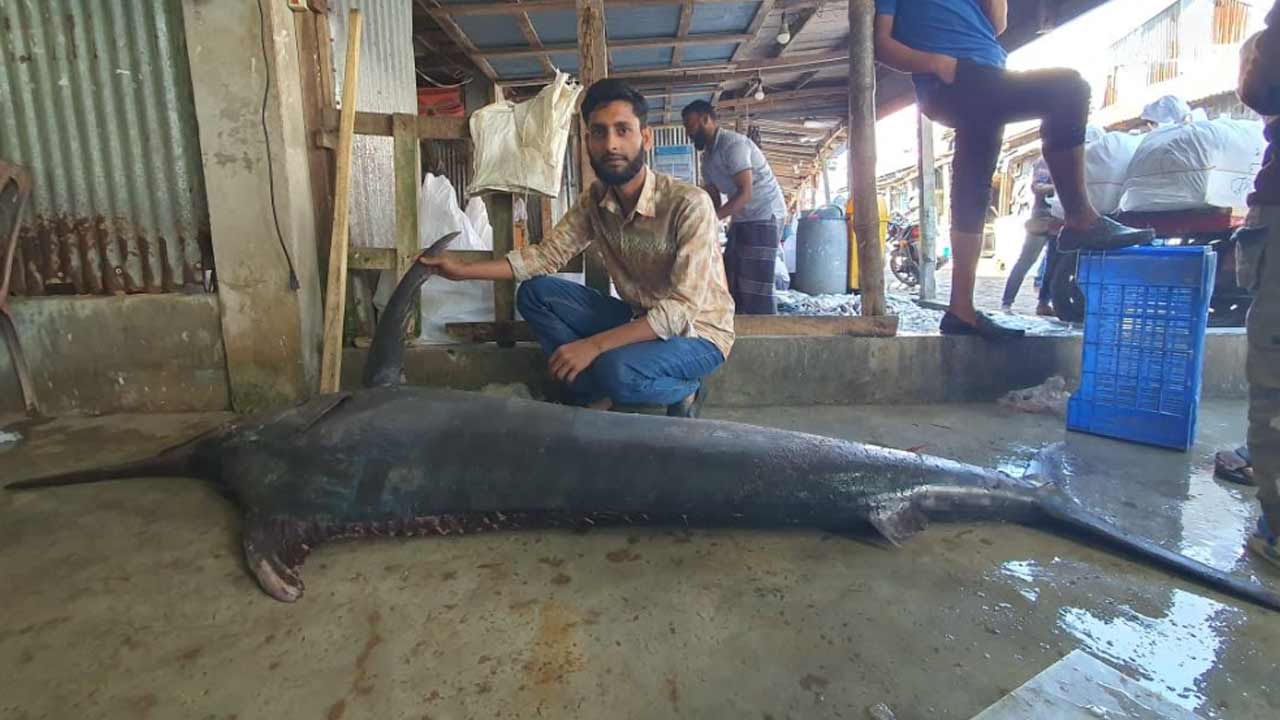 কুয়াকাটায় জেলের জালে ৮০ কেজির পাখি মাছ