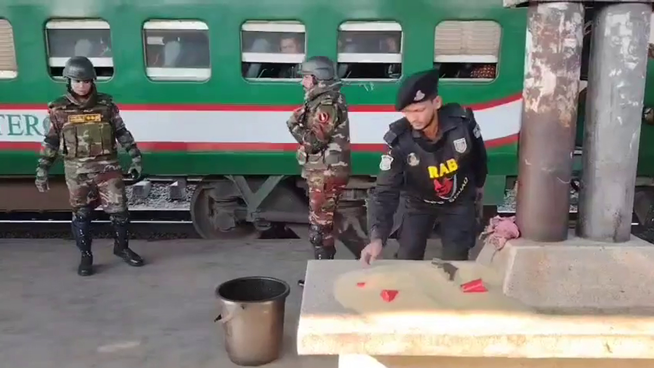 রাজধানীর বিমানবন্দর রেলওয়ে স্টেশনে দাঁড়িয়ে থাকা ট্রেনে অভিযান চালিয়ে দেশীয় পিস্তল, বুলেট ও ককটেল উদ্ধার করেছে বাংলাদেশ সেনাবাহিনী।