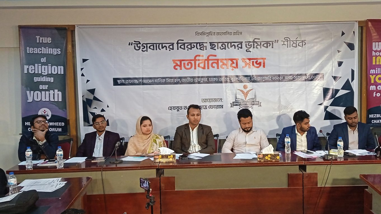 ধর্মীয় উসকানি, মব সন্ত্রাস ও উগ্রবাদের মাধ্যমে দেশে অরাজকতা সৃষ্টির অপচেষ্টার বিরুদ্ধে ছাত্রসমাজকে ঐক্যবদ্ধ হওয়ার আহ্বান জানিয়েছে হেযবুত তওহীদ ছাত্র ফোরাম।