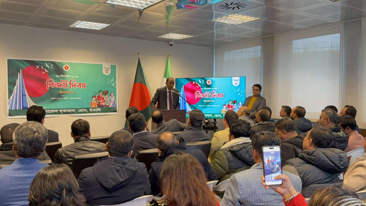 বাংলাদেশের মহান বিজয় দিবস উপলক্ষে ইতালির রোমে অবস্থিত বাংলাদেশ দূতাবাসে যথাযোগ্য মর্যাদা ও ভাবগম্ভীর পরিবেশে দিবসটি উদযাপন করা হয়েছে।