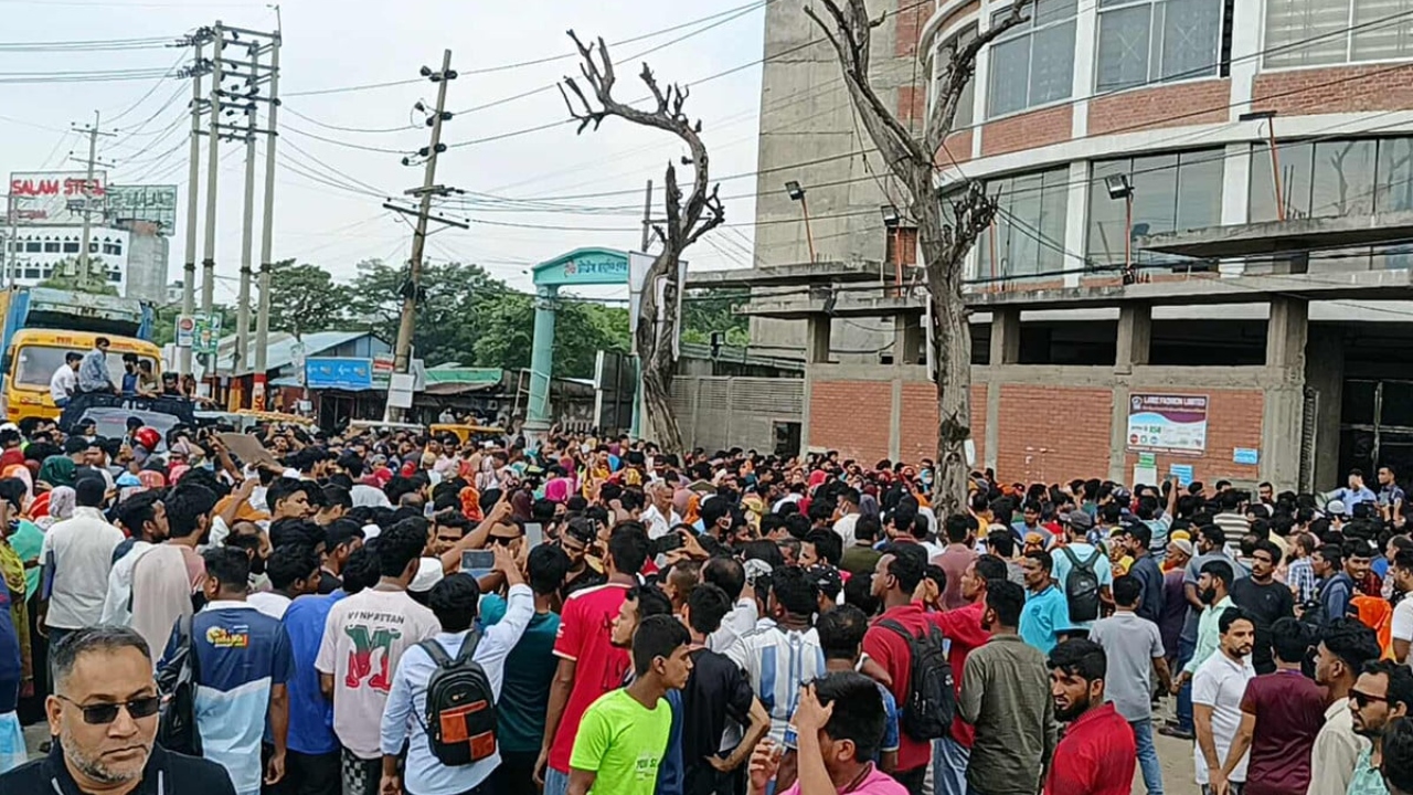 রূপগঞ্জে বকেয়া বেতনের দাবিতে মহাসড়ক অবরোধ
