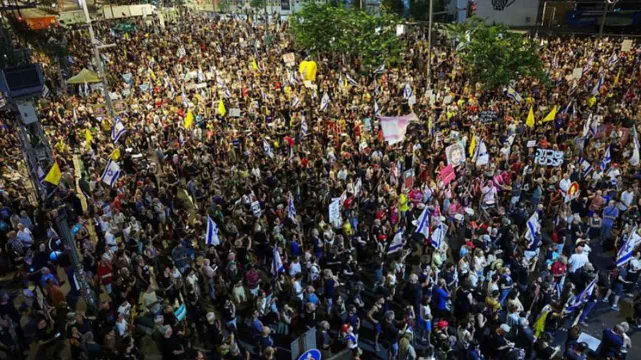 ইসরায়েলের হাজারো বিক্ষোভকারী গাজা যুদ্ধ বন্ধ ও জিম্মিদের মুক্তির দাবিতে রাস্তায় নেমেছেন। বন্দিদের পরিবারের সদস্যরা জাতীয় কর্মদিবসে বিক্ষোভ-অবরোধের ডাক দিয়েছেন, যার ফলে স্কুল, ব্যবসা ও গণপরিবহন বন্ধ রয়েছে। বিক্ষোভের মুখে