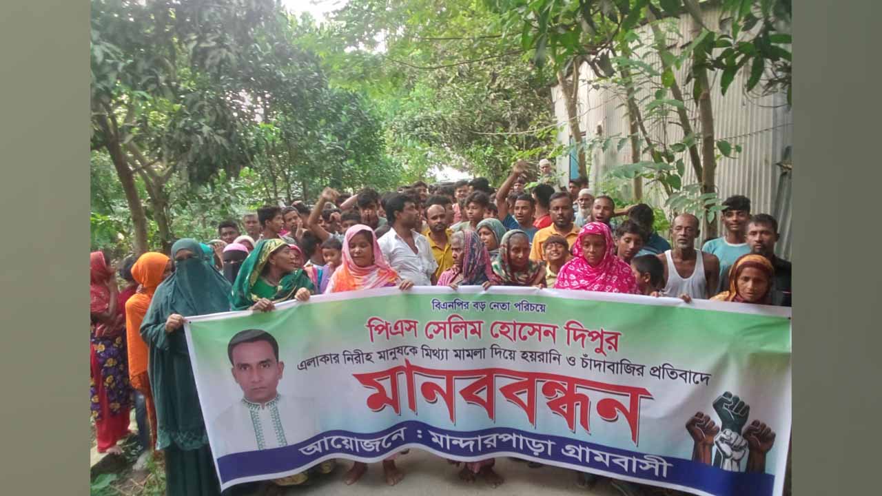 পিএস সেলিম হোসেন দিপুর বিরুদ্ধে মামলা বাণিজ্য, গ্রেপ্তার বাণিজ্য, চাঁদাবাজি ও সাধারণ মানুষকে হয়রানির প্রতিবাদে মানববন্ধন করা হয়েছে। বৃহস্পতিবার (১৯ জুন) উপজেলার বারদী ইউনিয়নের মান্দারপাড়া এলাকায় এ মানববন্ধন করা হয়।