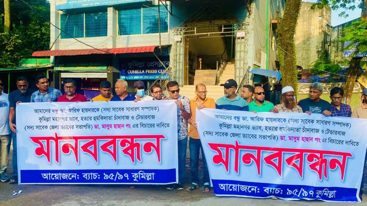 কুমিল্লায় ডা. আরিফ হায়দারকে হত্যার হুমকি, প্রতিবাদে মানববন্ধন